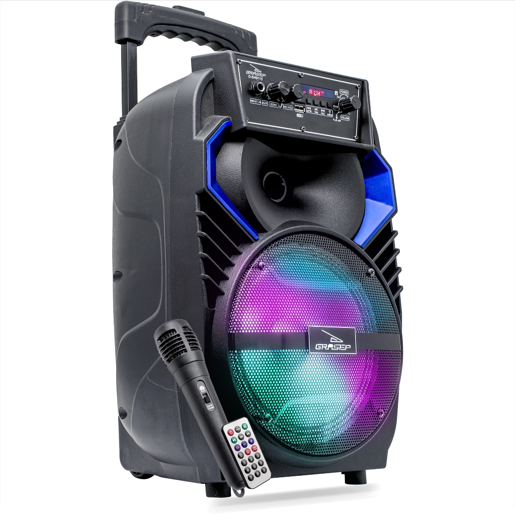 Caixa De Som Portátil Amplificada Bluetooth LED RGB Aux P2 Micro SD USB Radio FM Com Controle Microfone Karaoke