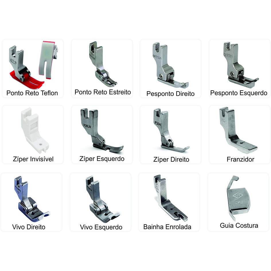 Kit Calcador Pezinho Acessorios Costura Reta Industrial 12pc Textil