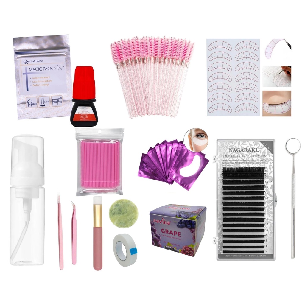Kit Iniciante Treino Extensão Alongamento de Cílios Nagaraku Cola HS 10 3ML Removedor Navina
