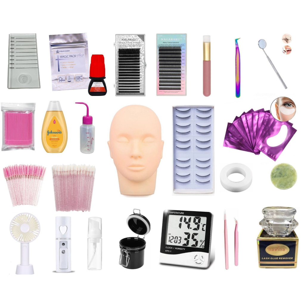 Kit Completo Treino Extensão e Alongamento Cílios Cola Elite HS10 Higrometro Cabeça Silicone Cílios Nagaraku Volume Brasileiro e Volume Russo