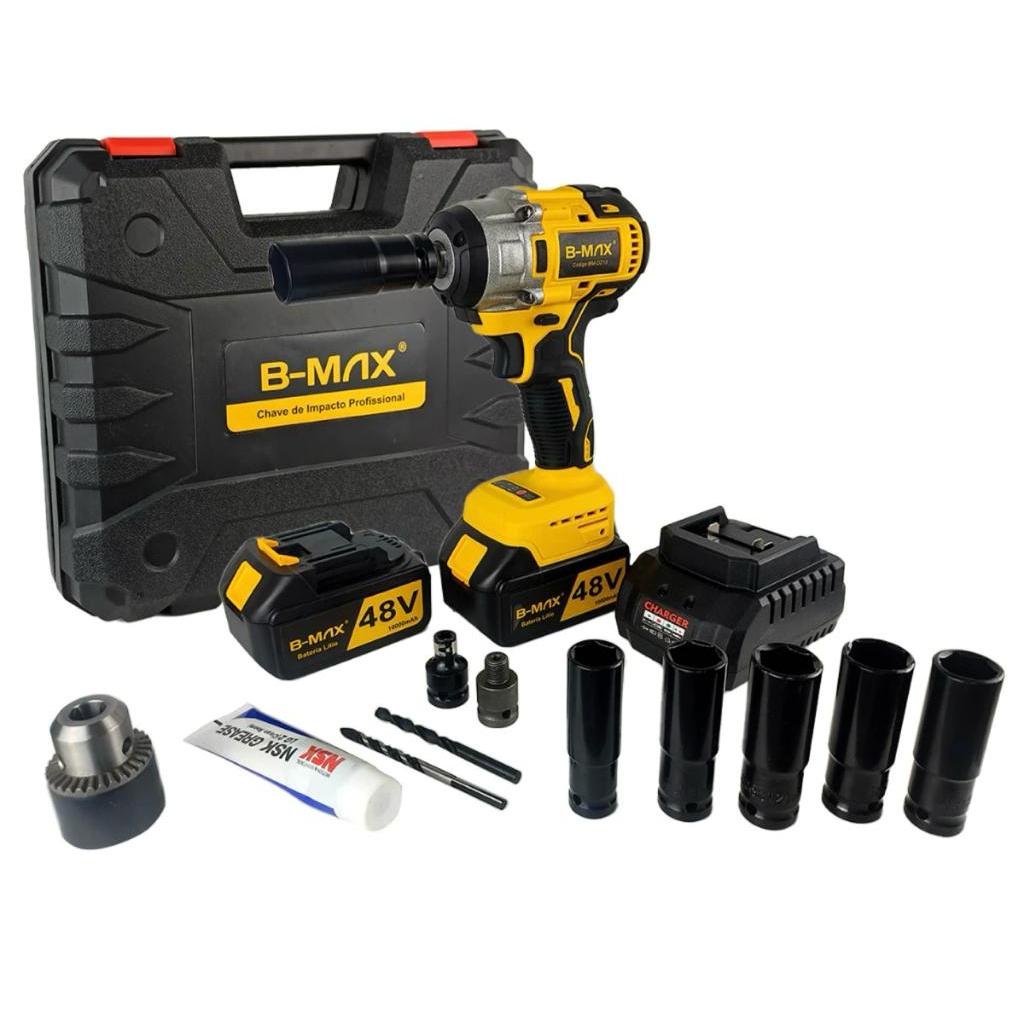 Chave de Impacto 1/2" 48V Profissional com 2 Baterias de Litio recarregável portátil parafusadeira B-MAX Bivolt