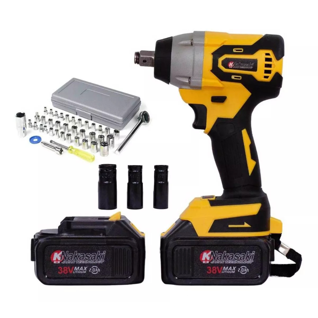 Chave de Impacto Parafusadeira 38v + 2 Baterias Mala Acessórios e Jogo Soquete 40pç