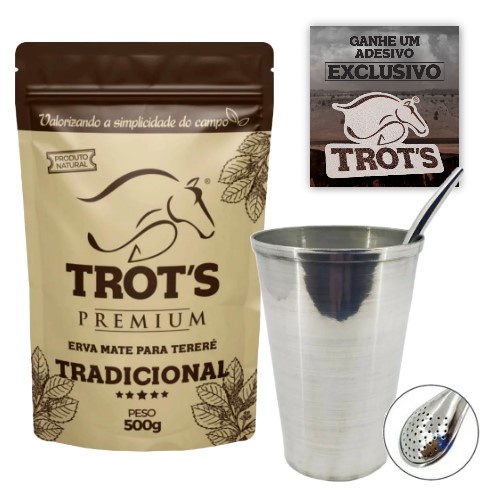 Kit Iniciante Tereré - Copo Inox + Bomba Clássica + Erva Mate Trots Tradicional
