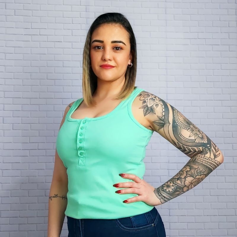 Regata feminina botão blusa amamentação baby look Malha Canelada algodão Conforto Moda Verão