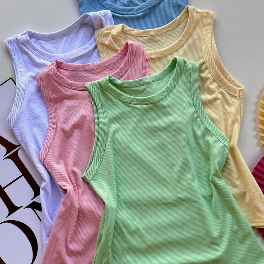 Regata Candy Color Feminina Básica Ribana Algodão Moda Blogueira tons pasteis