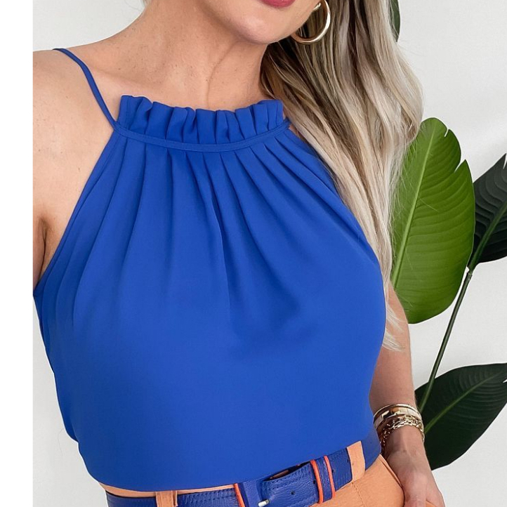 Blusa Feminina Gola Drapeada Tecido Duna Regata Lisa Básica Frente Única Moda Blogueira Lançamento