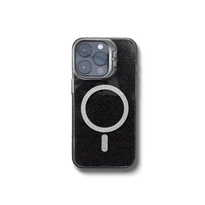 Capa Capinha Case Brilho Luxo Glitter Premium Magsafe Magnética Com Suporte Bracket Para Iphone 15 Pro - Preto