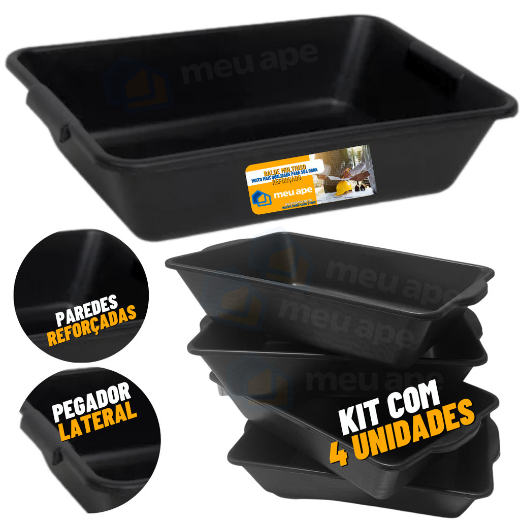 Caixa Plástica Bandeja Preta 20L Multiuso para Obra Massa Pedreiro Pet Gato