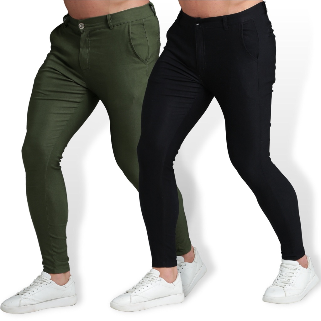 Kit 2 Calça Masculina Alfaiataria Skinny Com lycra Sarja