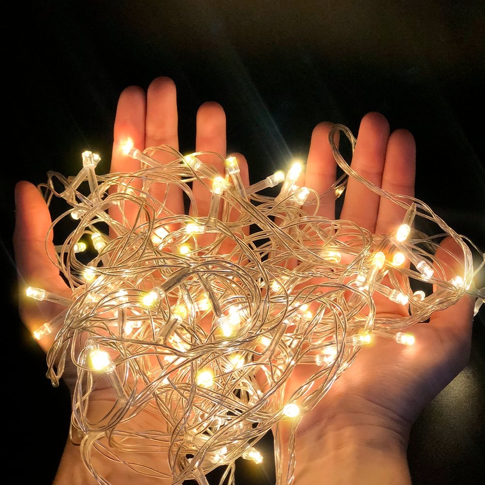 Pisca Pisca Luz Led De Natal Fio Transparente Luz Branco Frio Decoração 8 Funções 110V 100 Lâmpadas