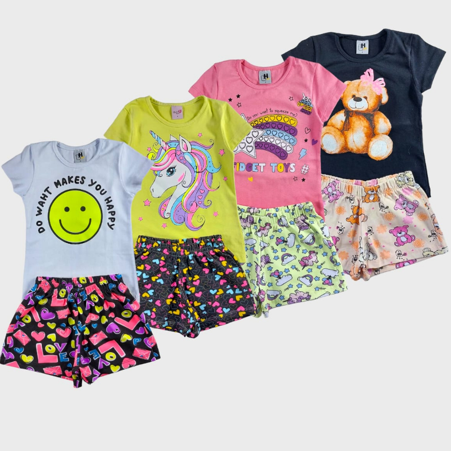 Kit Sortido 10 Peças de Roupas Infantil Menina 5 Camisetas + 5 Bermudas - Promoção - Kit com 5 Conju
