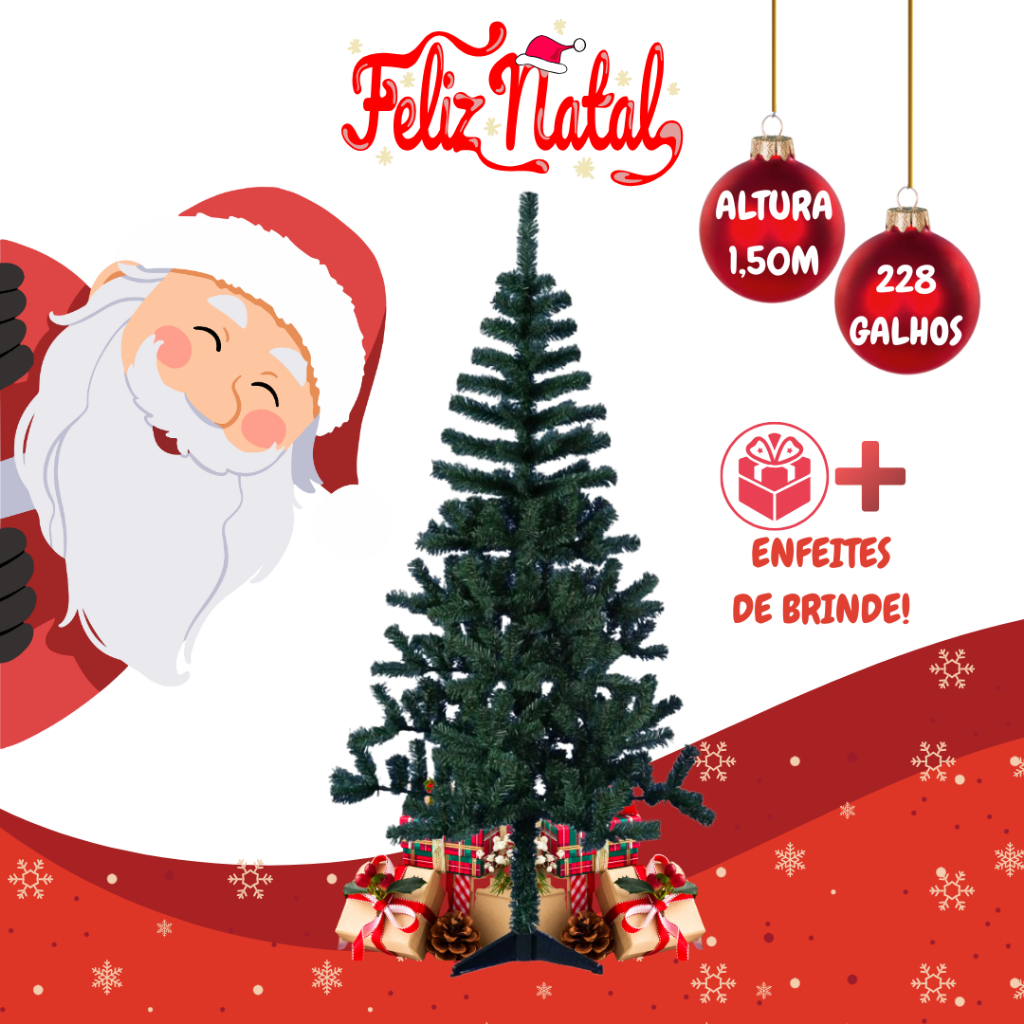 Árvore De Natal Pinheiro Canadense Verde Tradicional 1,5m 228 Galhos 1,2m 120 Galhos