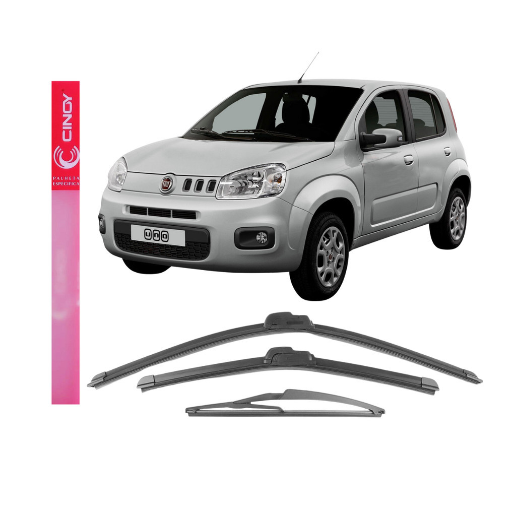 Kit 3 Palhetas Fiat UNO VIVACE 2011 2012 2013 2014 2015 2016 Limpador De Parabrisa Dianteiro + Traseiro CINOY