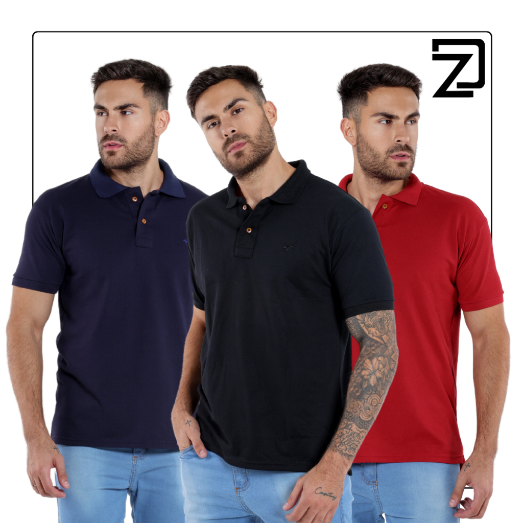 Kit 3 Camisas Polo Masculina Básica Varias Cores