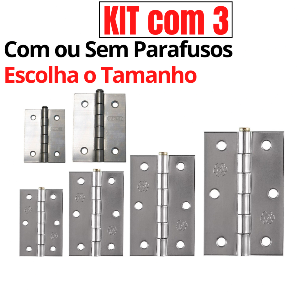 Dobradiça para Porta Polida Kit com 3 Dobradiças 2 - 2,5 - 3 - 3,5 - 4 Kit Dobradiça com Parafusos para porta de Madeira Casa Comum