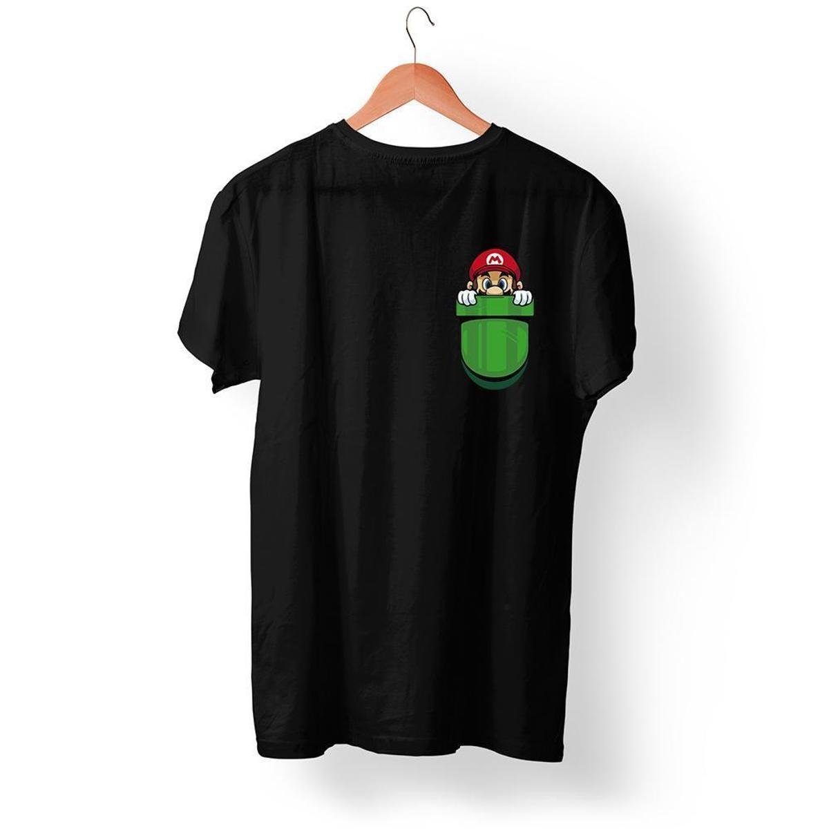 Camisa Super Mário Saindo do Bolso da Camiseta que é Tube Verde Camiseta Cores