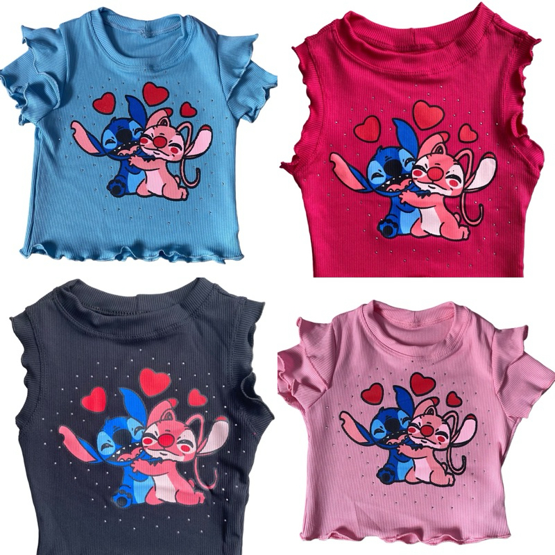 Cropped Stitch Brilho Canelado / Cropped infantil / Regatinha ribana blogueirinha / Blusinha regata menina