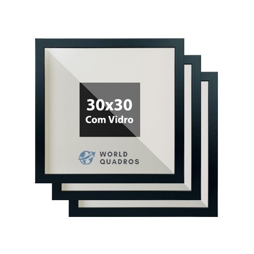 Kit 3 Molduras 30x30Cm Com Vidro e Fundo Foto Quadrado Retrato Quadro Decoração Poster