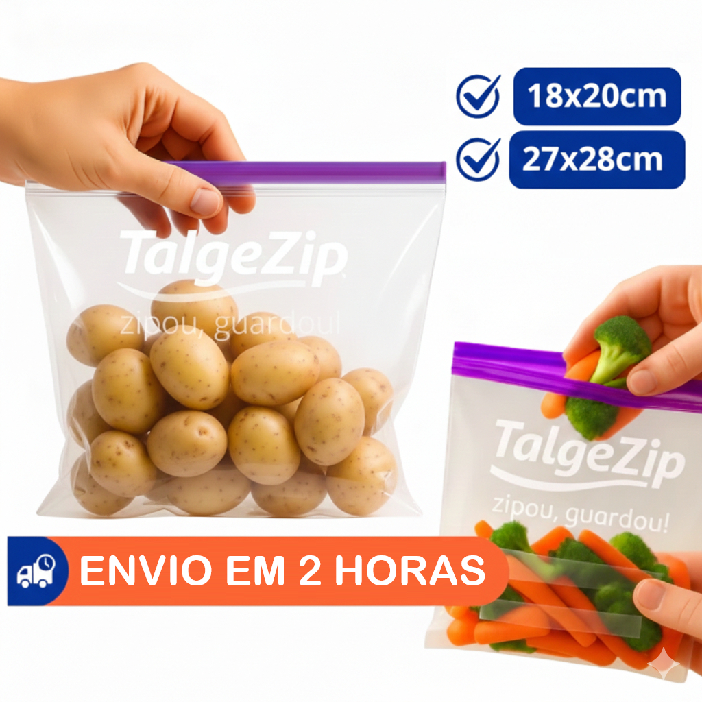Saco Zip Hermético para Freezer e Microondas com Duplo Fecho ou Slider Fecho de Correr Talge