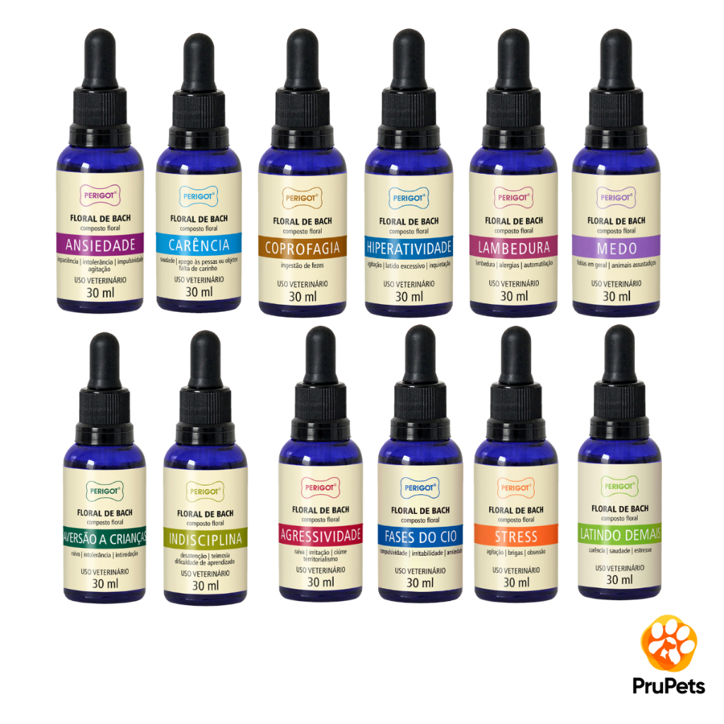 Floral Pet Bach Perigot 30ml Vários Tratamentos Cães e Gatos