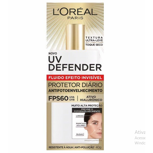 Protetor Solar Facial L'oréal Paris UV Defender Fluido Efeito Invisível Antifotoenvelhecimento FPS 60, 40g