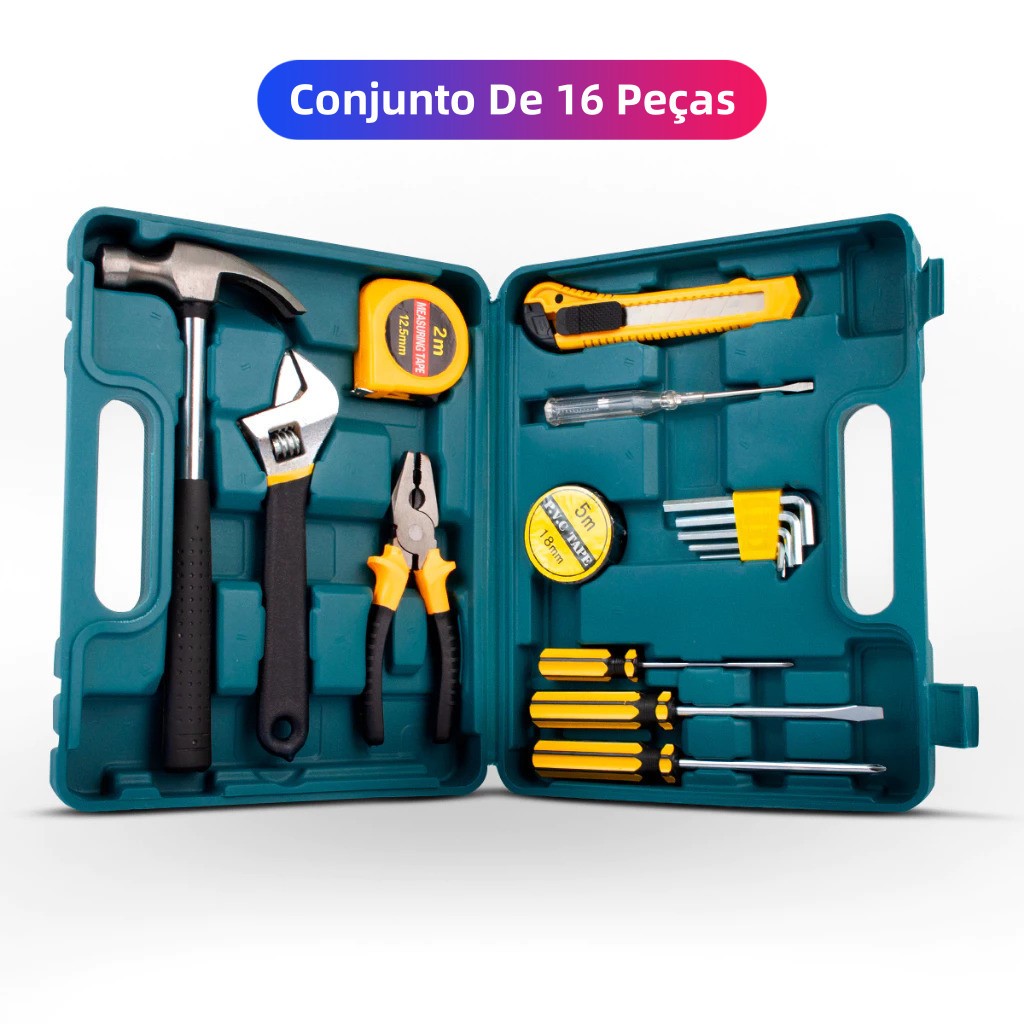 Kit de Ferramentas 16 Peças com Maleta e Itens Essenciais para Reparos