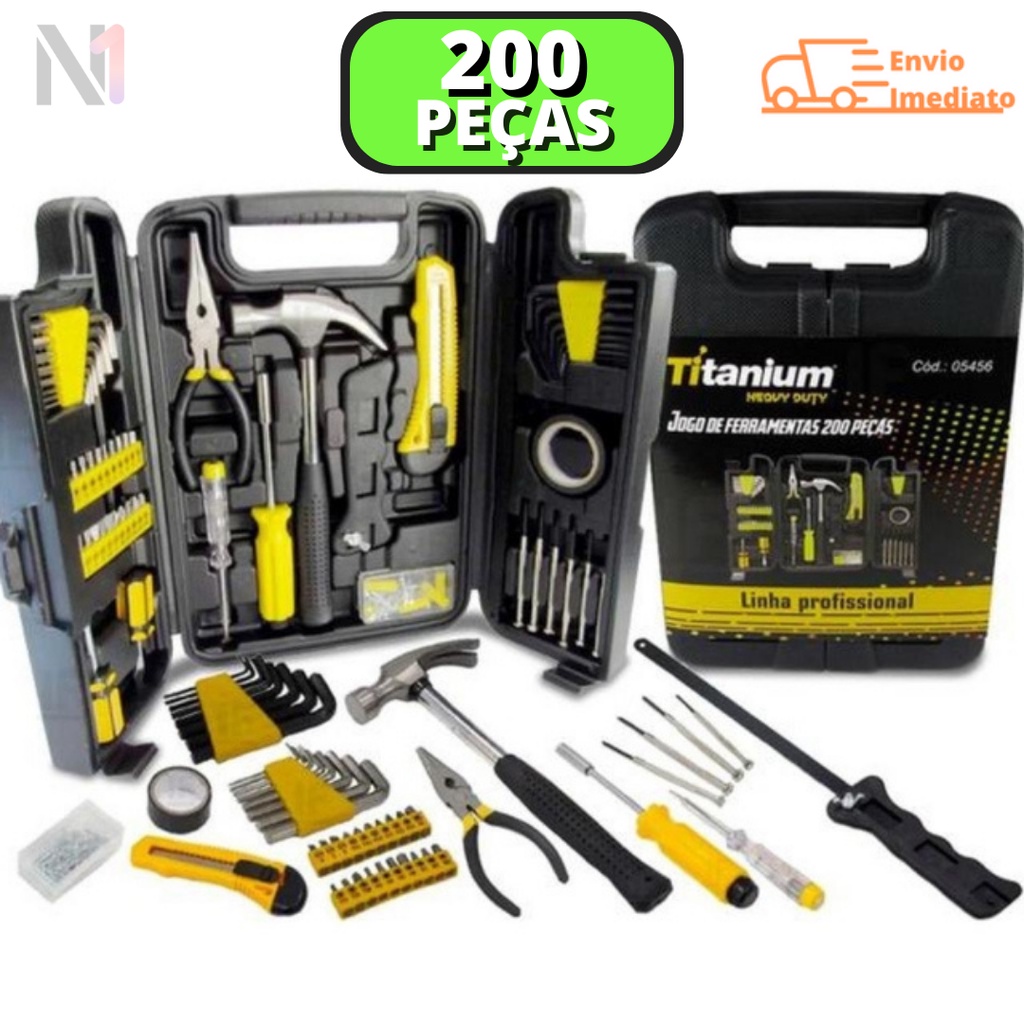 Kit Com Maleta Jogo De Ferramentas E Chaves Combinadas 200 Peças Com Maleta Para uso geral Linha Profissional - Titanium