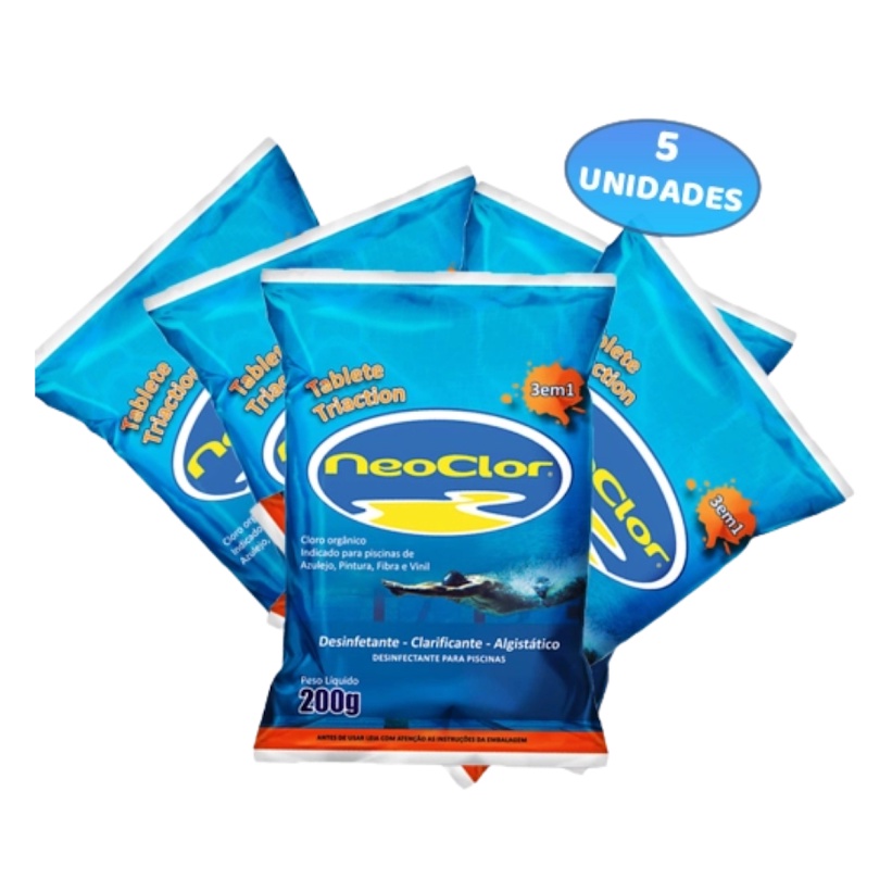 KIT 5 PASTILHAS DE CLORO CLARIFICANTE 3 EM 1 200G PARA PISCINAS