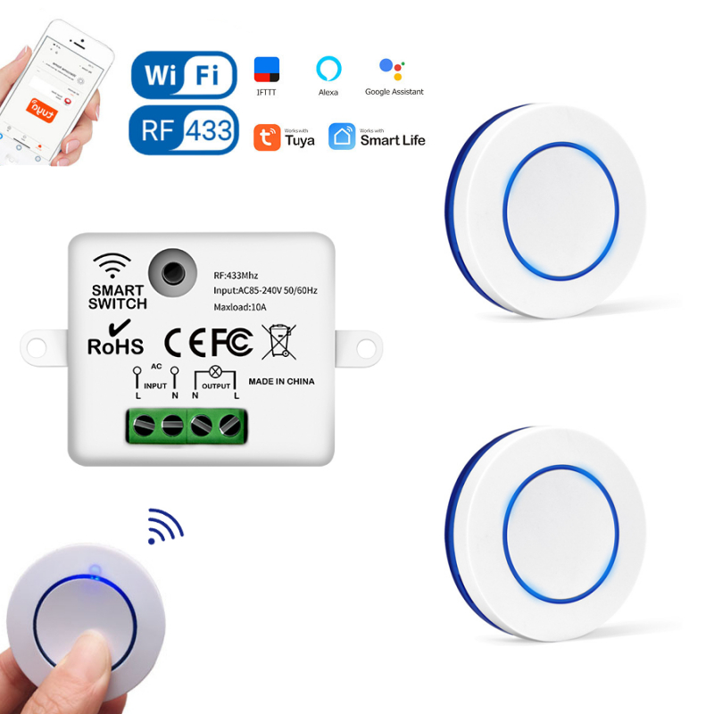 RF 433Mhz Interruptor De Luz De Controle Remoto Sem Fio 10A Painel De Parede Com Mini Botão Redondo Para Iluminação Led