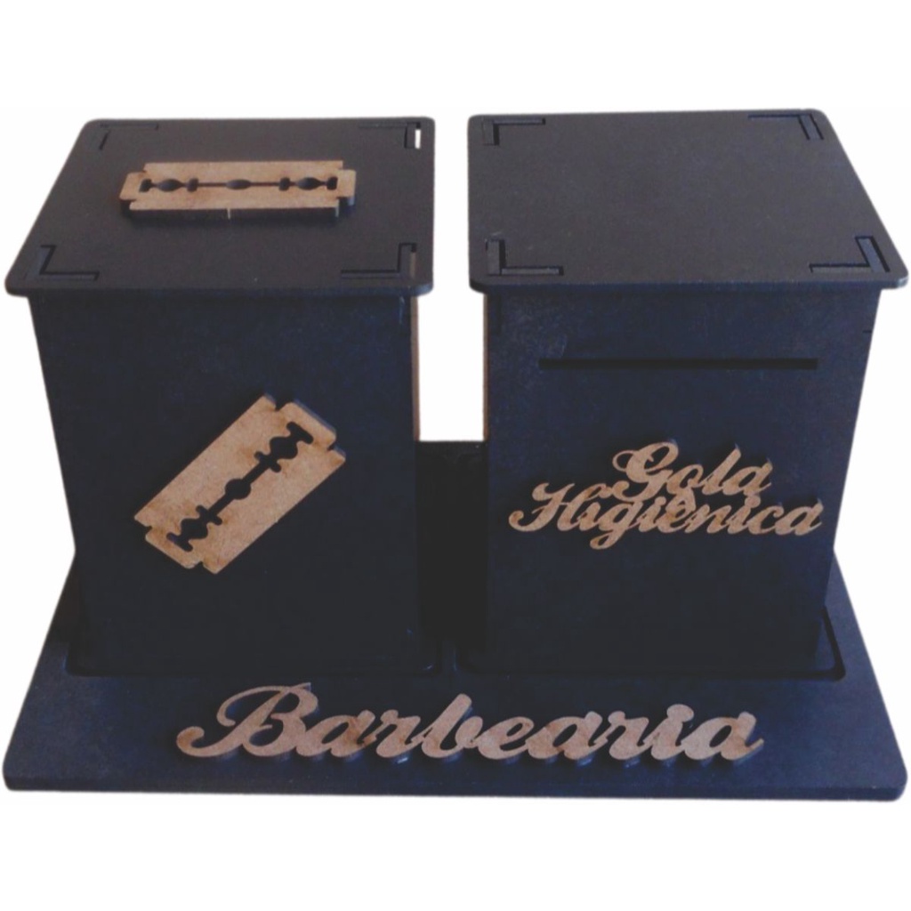 Descarte Porta Gilete mais Porta Gola Higiênica com Base para Barbearia em Mdf Preto