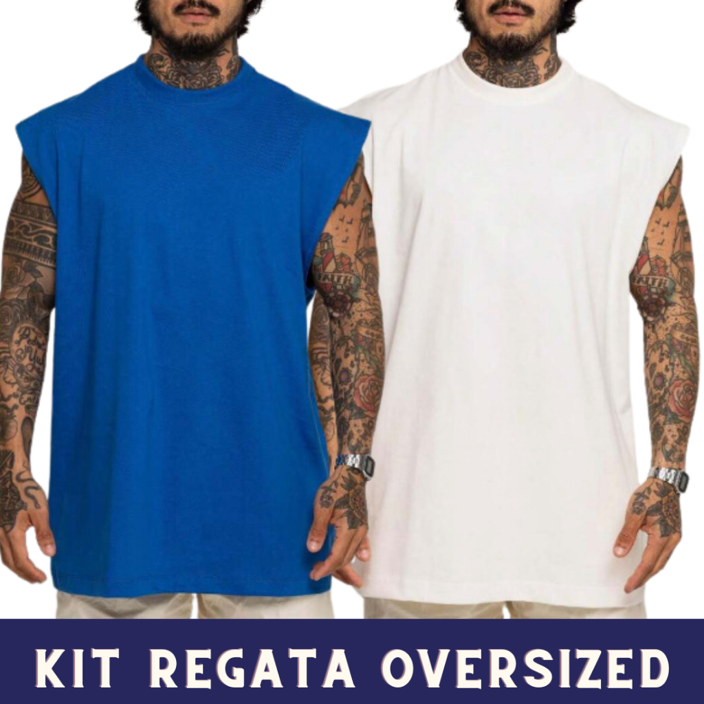 Kit 2 Camisetas Regata Oversized Masculina Streetwear Academia Treino Sport Tecido de Alta Qualidade