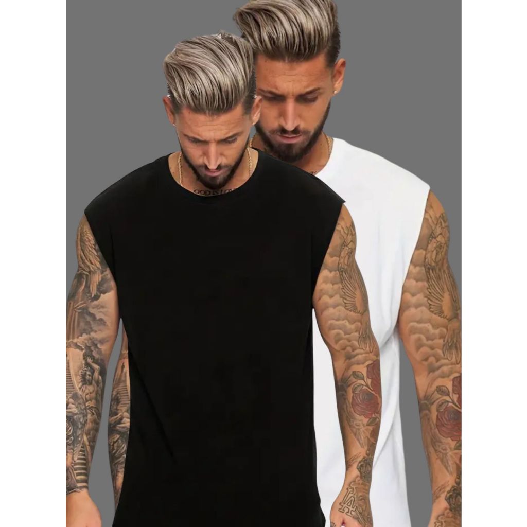 KIT 2 Peças Camiseta Masculina Regata Machão Longline Oversized Academia Fitness Treino