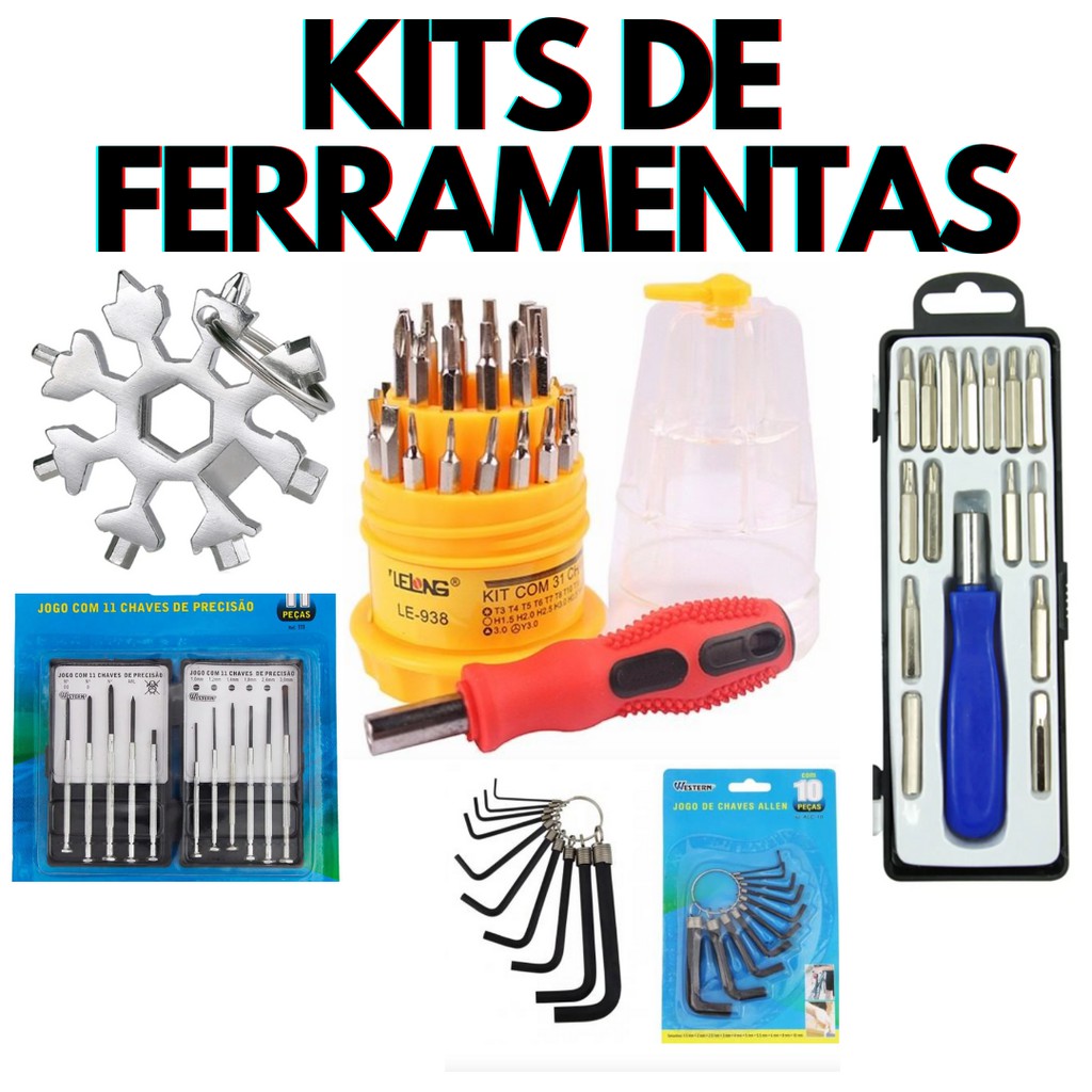 Kits de Ferramentas - Vários Modelos kit p/ manutenção de Eletrônicos Chave Torx, Fenda, Philips, Alen, Y.