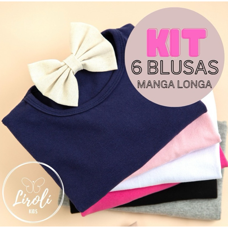 Kit 5 Blusas Manga Longa Infantil Menina Algodão Lisa ou 3 Blusas Manga Longa Algodão