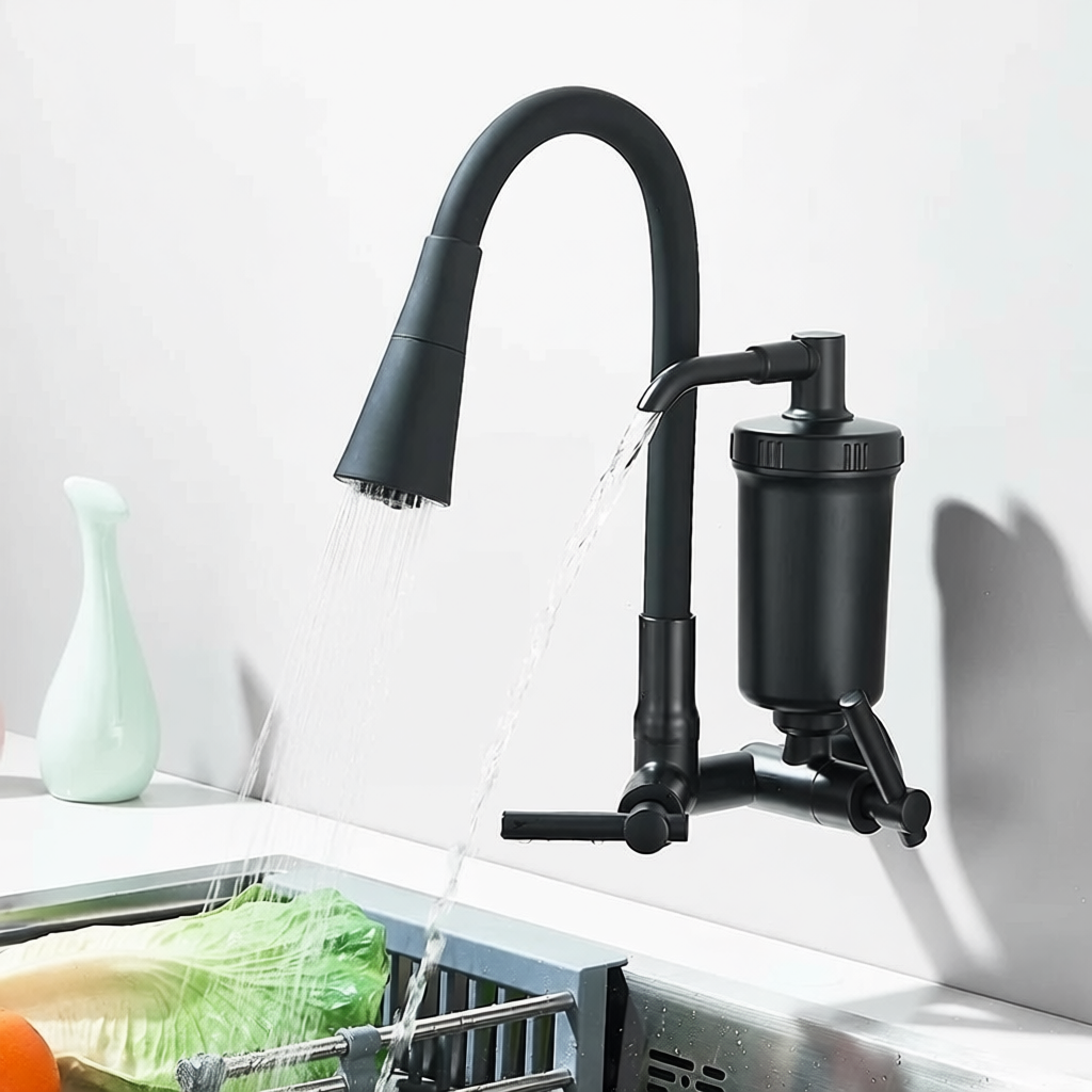 Torneira Preta Com Filtro Para Cozinha, Torneira Flexivel de Parede Cozinha,Torneira Preta Gourmet Parede, Filtro