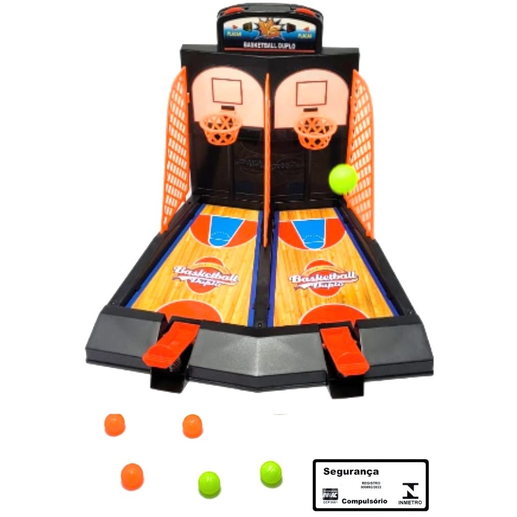 Jogo Basketball Duplo Braskit Basquete para 2 Jogadores com Placar Brinquedo Infantil Lança Bolas