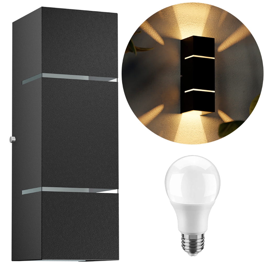 Kit 8 Arandelas Retangular 30Cm 2 Frisos 2 Focos E27 Bivolt + 18 Lâmpadas Led 9W Mf116 - Mega Forte