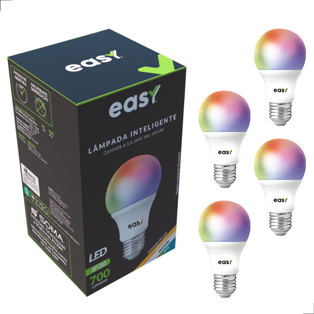 Kit 4 Lampadas Led Smart RGB Colorida Bivolt E27 - Easy