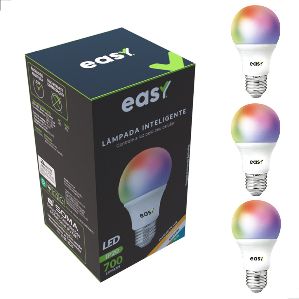 Kit 3 Lampadas Led Smart RGB Colorida Bivolt E27 - Easy