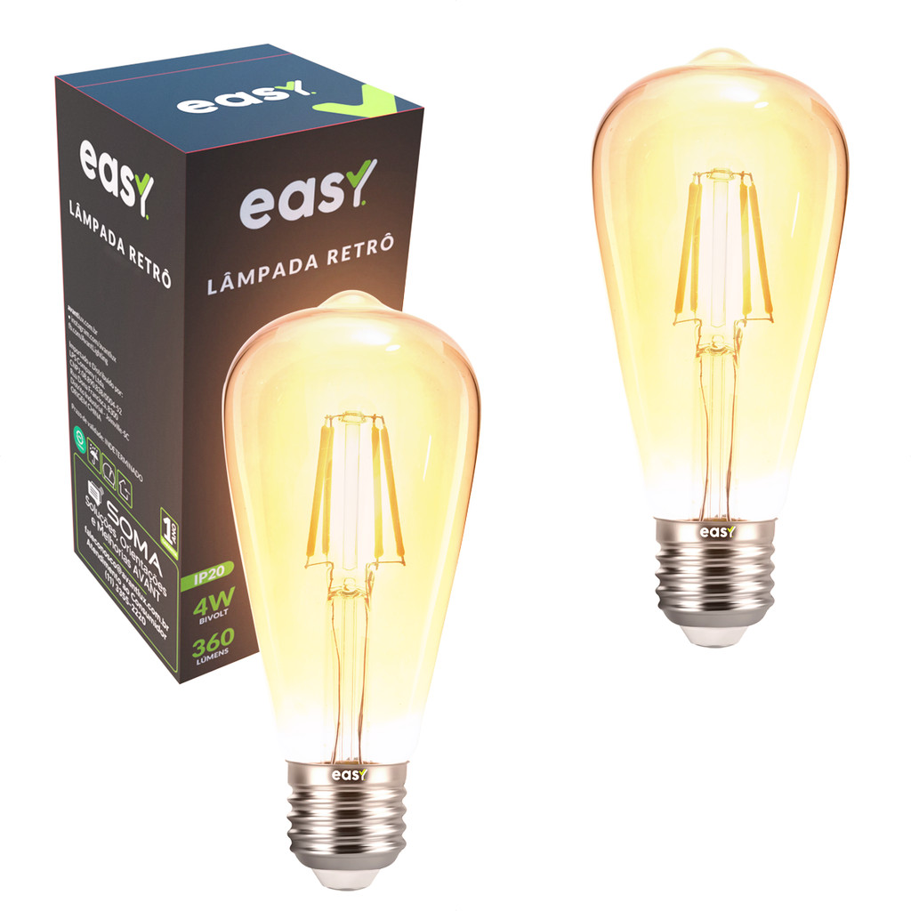 Kit 2 Lâmpadas de Led ST64 Retro Vintage Ambar 4w 2400k E27 Bivolt Easy Luz Quente