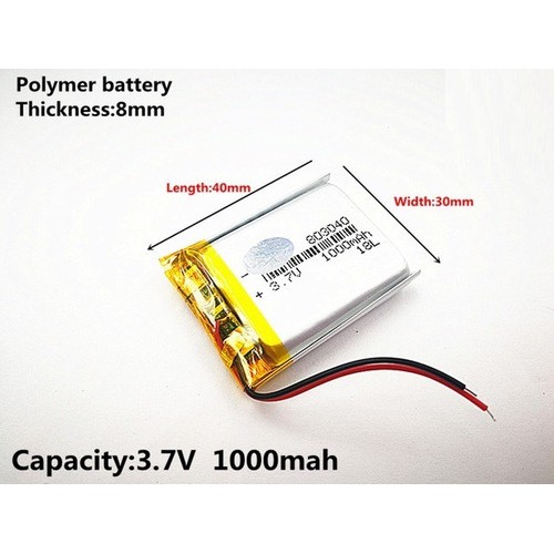 Bateria C/2 Fios 3,7v 1000mah 8mm X 30mm X 40mm Nova