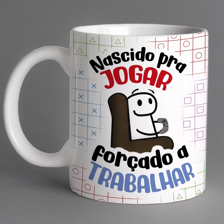 Caneca Xicara Personalizada Presente Gamer Frases Engraçadas Meme Flork - Nascido para Jogar Forçado à Trabalhar