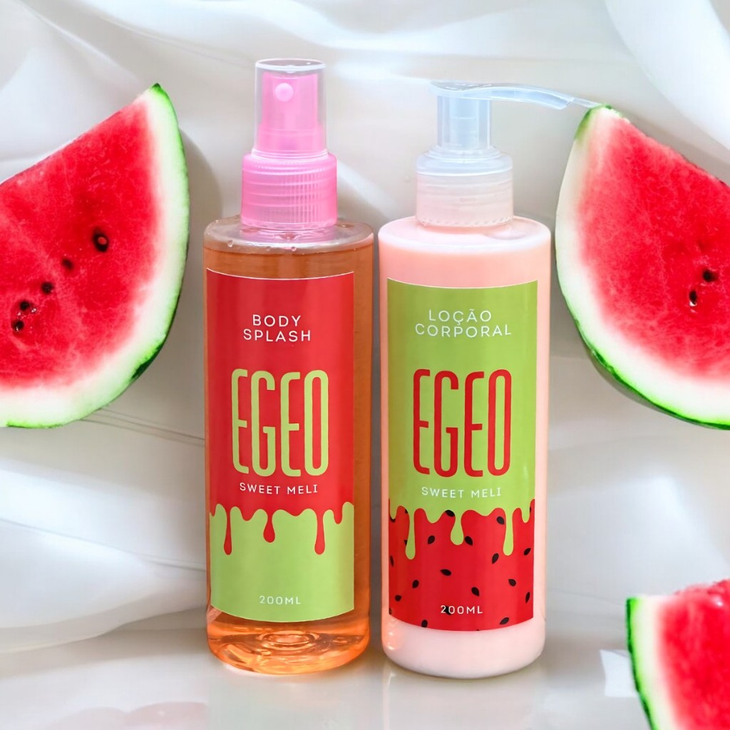 Kit Creme Hidratante Corporal e Body Splash Feminino Melancia - Sweet Meli 200ml cada