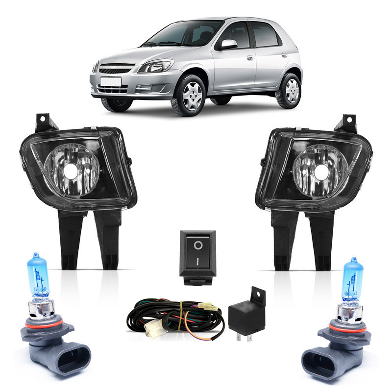 Kit Farol de Milha Auxiliar Completo + Par Lâmpada HB4 Celta 2007 2008 2009 2010 2011 2012 2013 2014 2015