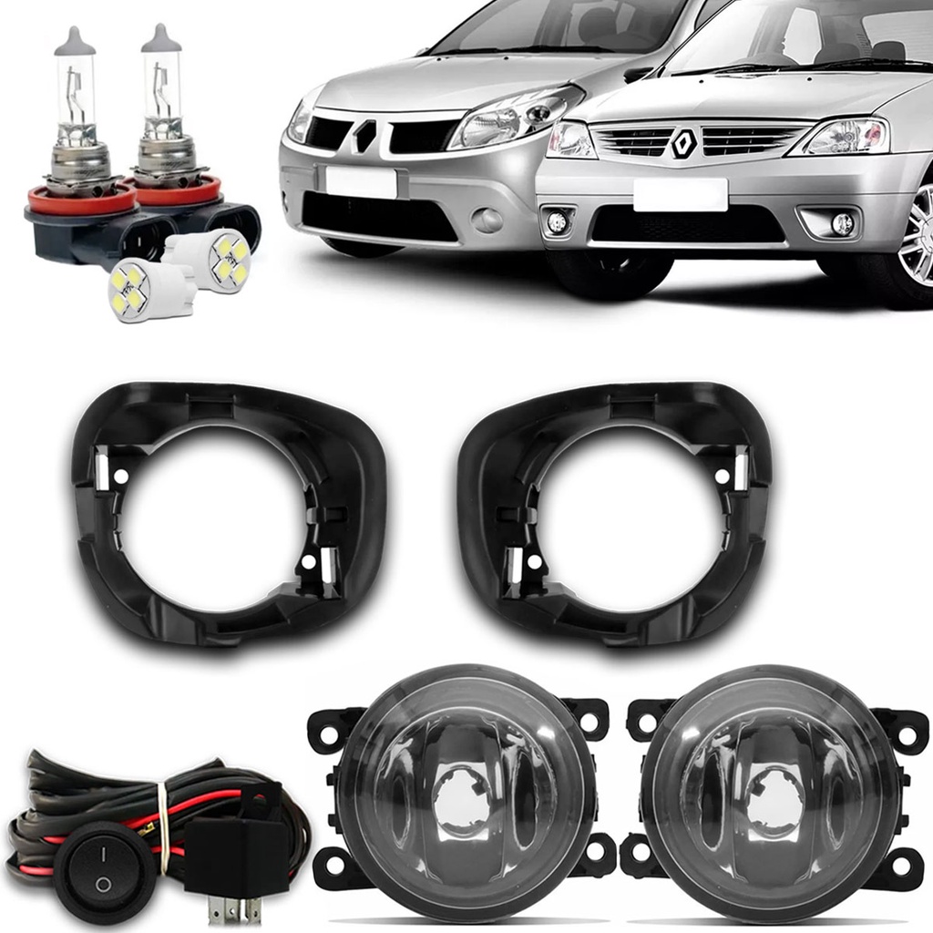 Kit Farol De Milha Neblina Auxiliar Logan Sandero 2007 2008 2009 2010 2011 2012 2013