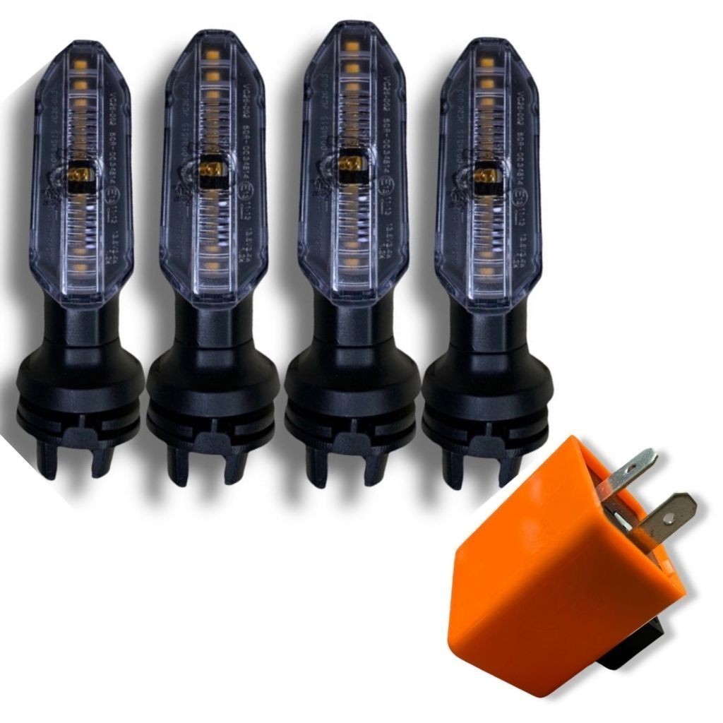 KIT C/4 PISCA SETA LED HONDA CB250F TWISTER FAN TITAN + RELE PISCA SETA LED MOTO 2 PINOS COM REGULAGEM DE VELOCIDADE