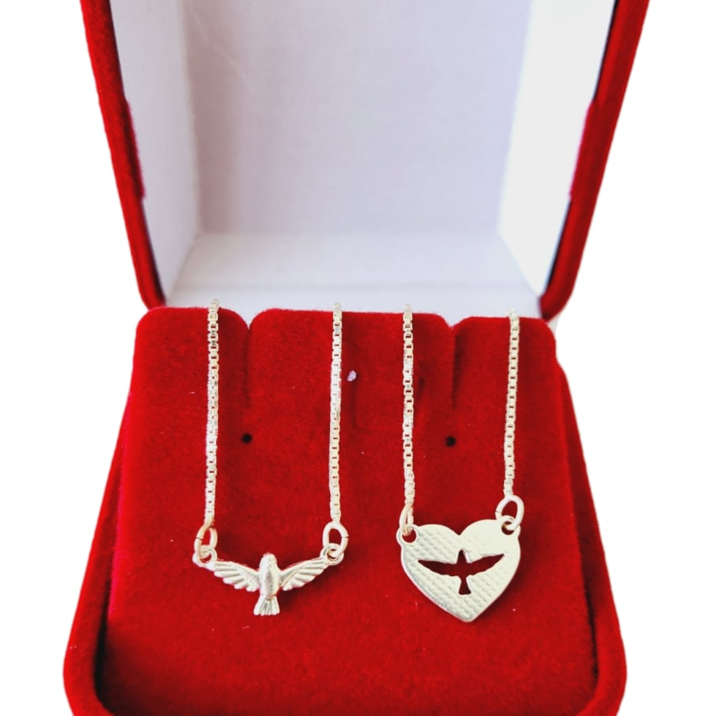 Colar Escapulário Espirito Santo Pássaro Prata 925