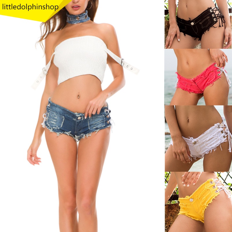Feminina Jeans Mini Hot Pants Cintura Baixa Shorts Jeans