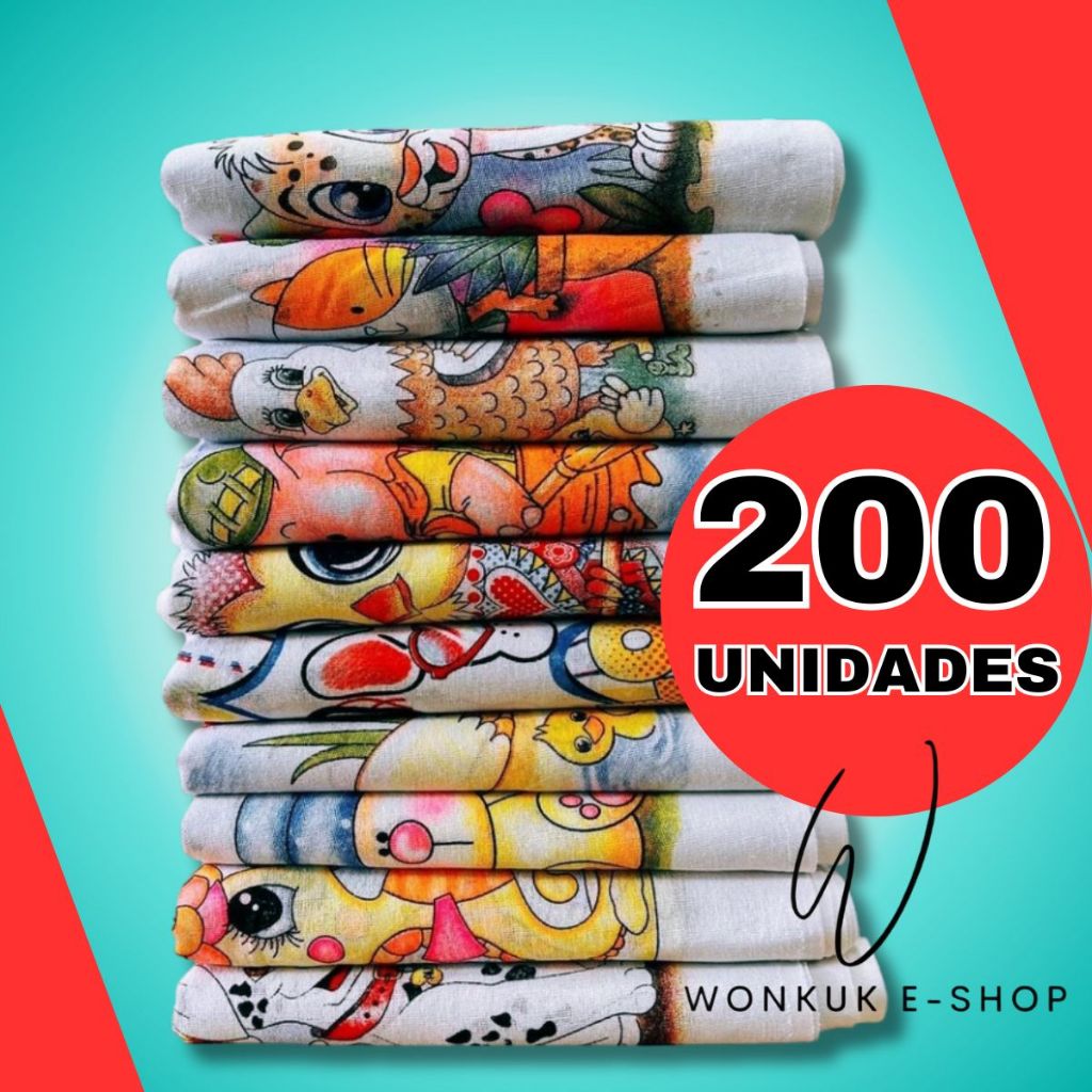 kit 200 Pano de prato de cozinha estampado com bainha 100% algodão peças variadas