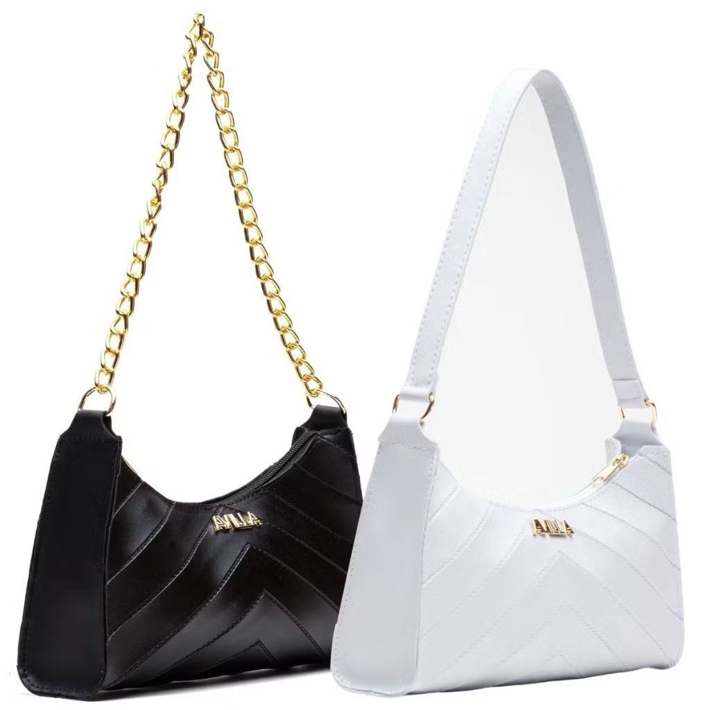 Kit 2 Bolsas Feminina Baguete Alça Corrente Bordada Seta Pequena Ombro Mão